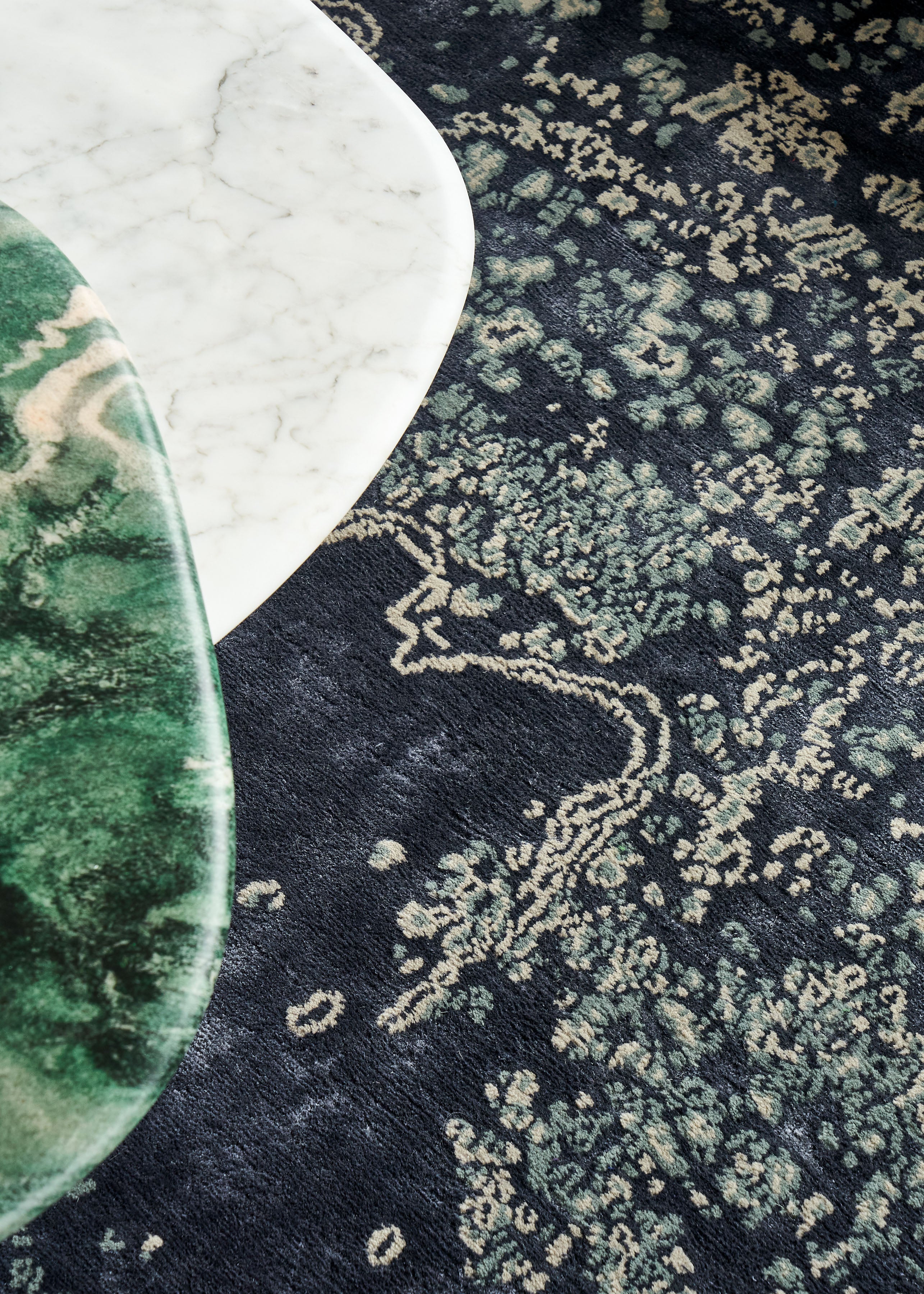 Our customization process allows you to create a rug tailored to your space—sized and shaped to your specifications, colored to match your palette with expert guidance and natural vegetable dyes, and crafted from the finest hand-processed, all-natural fibers like Himalayan wool and Chinese silk using traditional weaving techniques for exceptional beauty and durability.