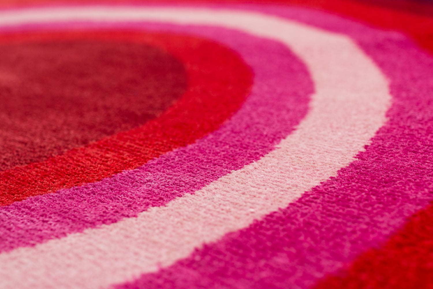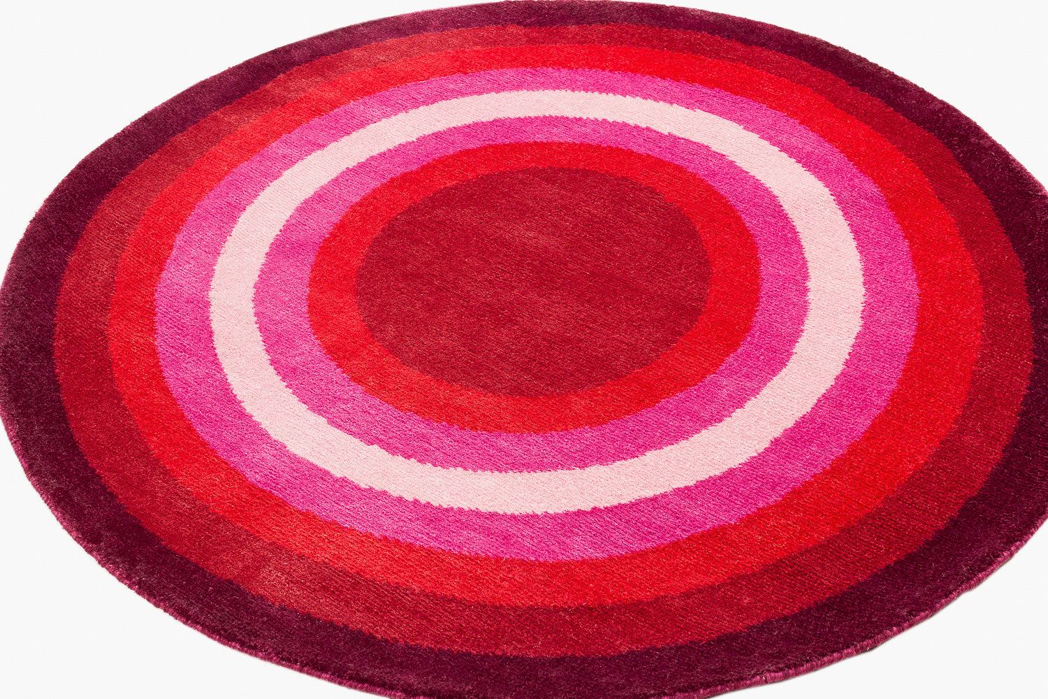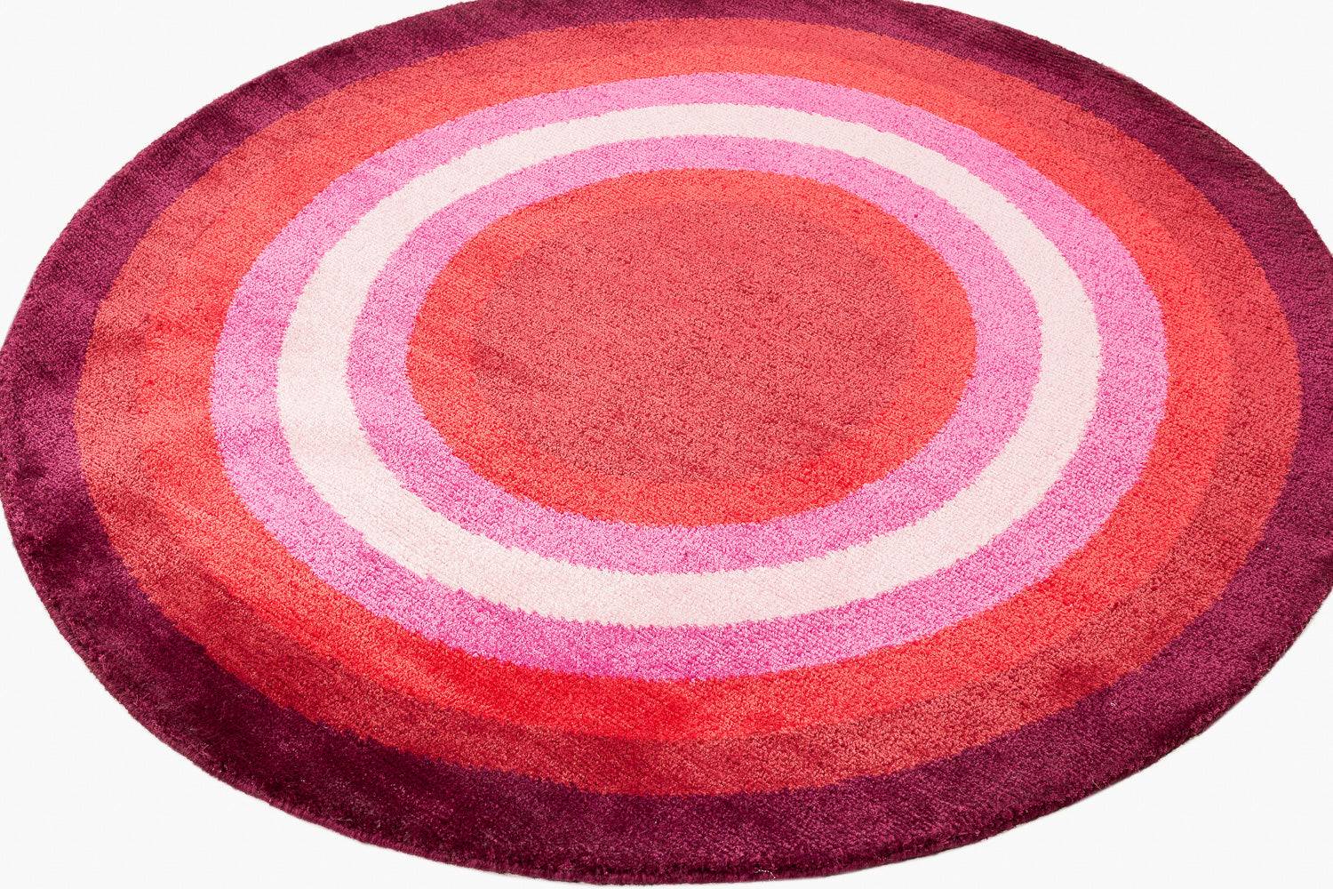 Carini Lang' first limited-edition collection of round rugs. The bullseyes are a series of throw rugs designed by Joseph Carini with bold, playful colors that are as irresistible as candy! As the designs evolved, pairs naturally emerged and were affectionately named after iconic couples from pop culture and the arts.