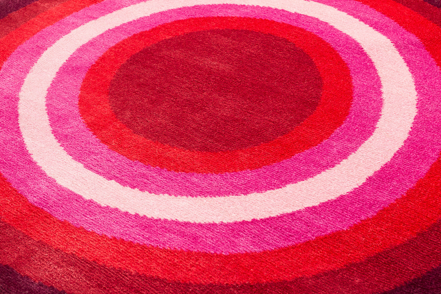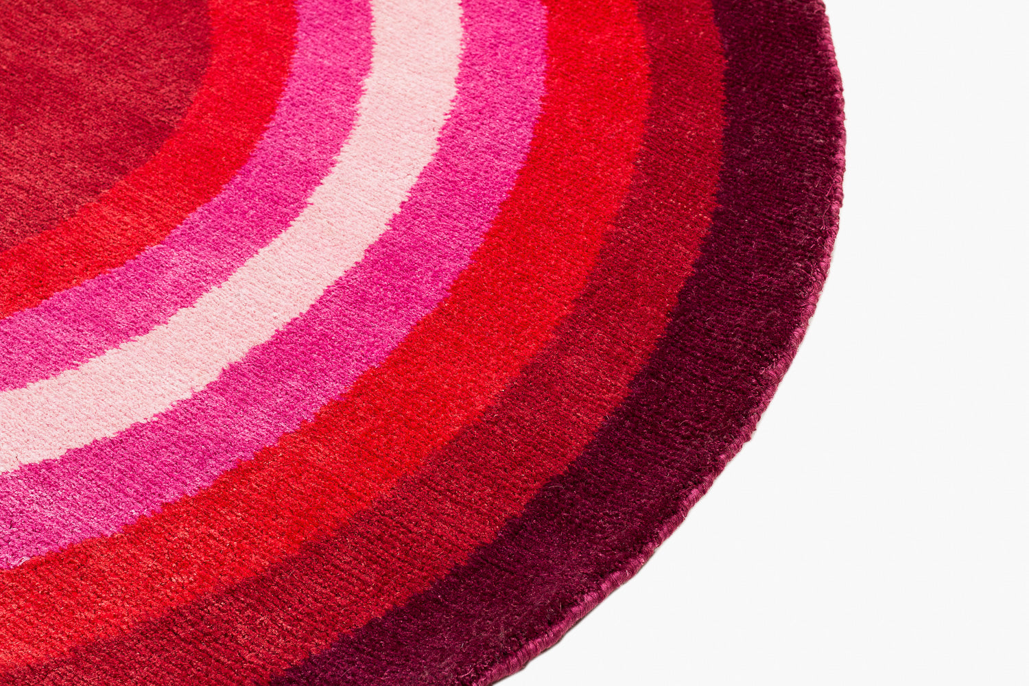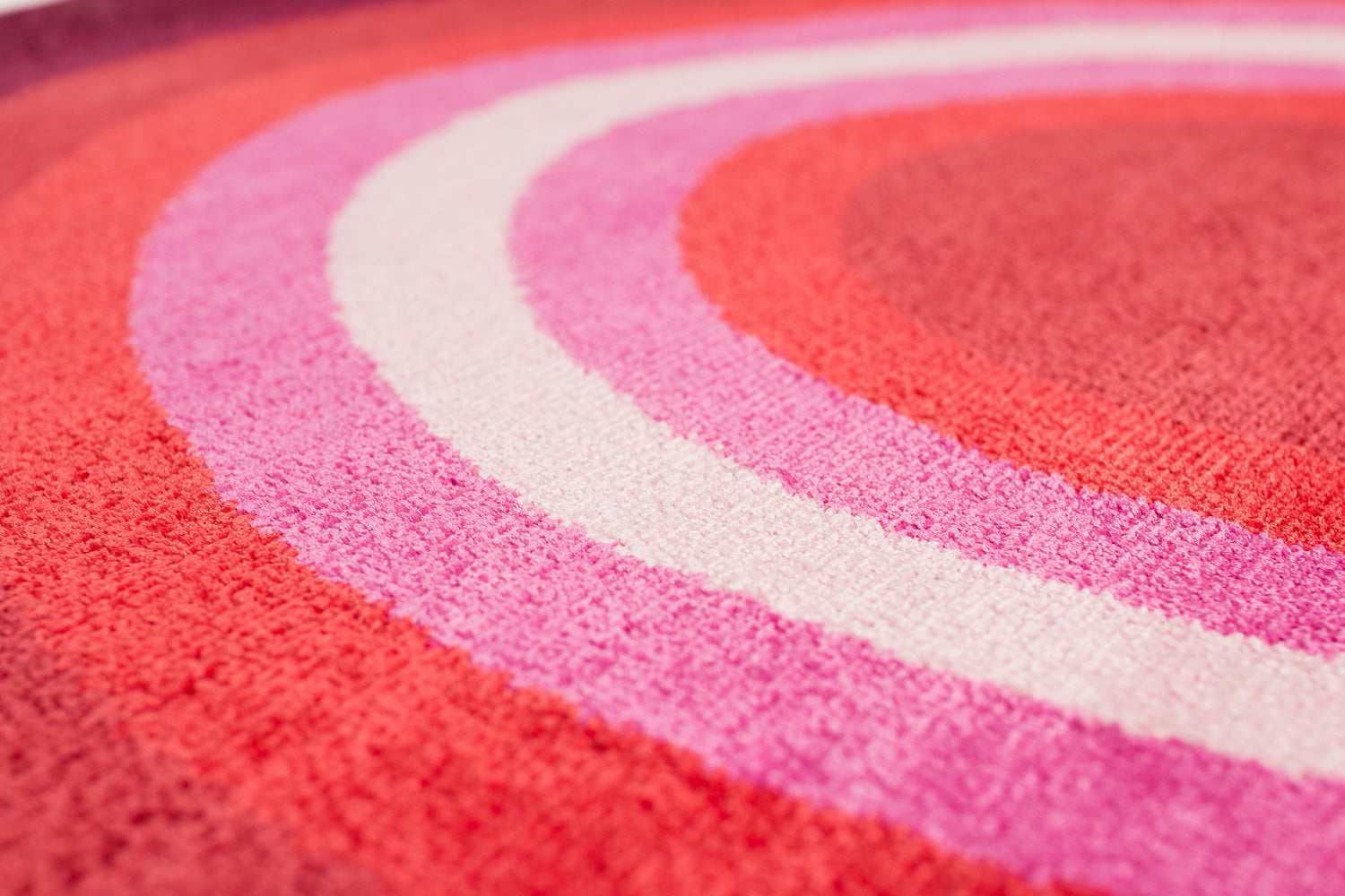 Carini Lang' first limited-edition collection of round rugs. The bullseyes are a series of throw rugs designed by Joseph Carini with bold, playful colors that are as irresistible as candy! As the designs evolved, pairs naturally emerged and were affectionately named after iconic couples from pop culture and the arts.