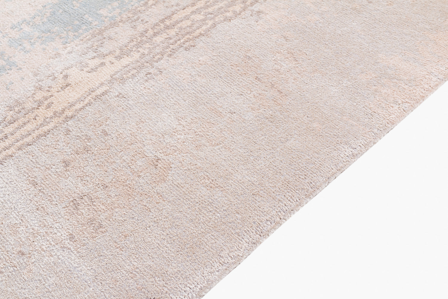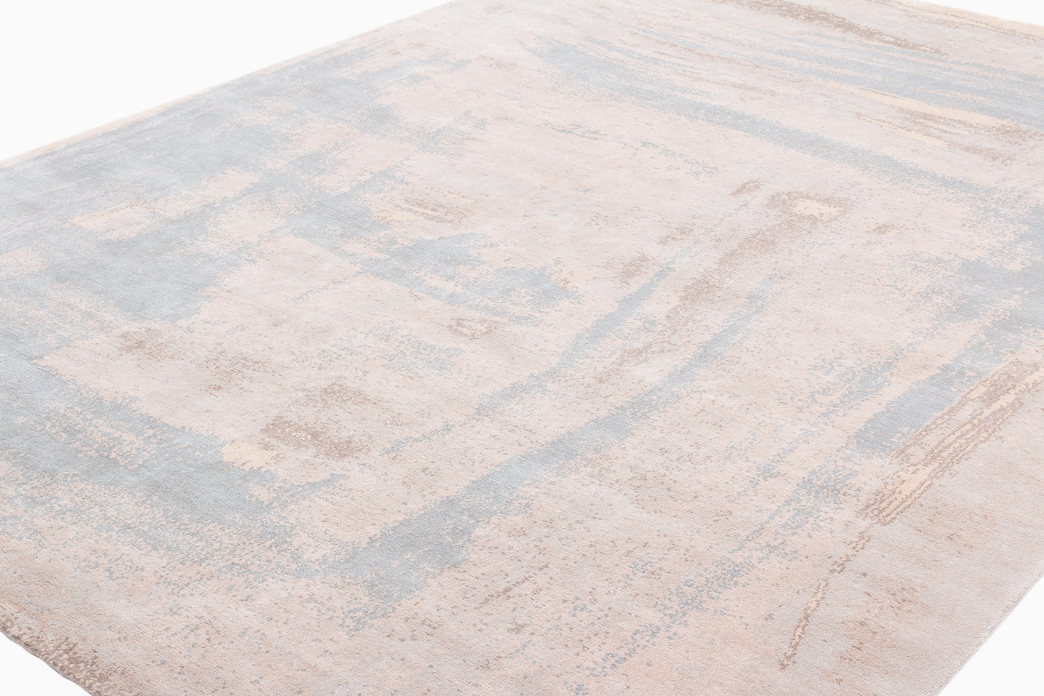 Brushstroke Blue Rees showcases an elegant interplay of abstract sandy beige strokes over a serene field of soft blue, creating a harmonious fusion of earth and water. Inspired by nature’s timeless elements, this exquisite design by Joseph Carini is brought to life through a luxurious wool and silk weave
