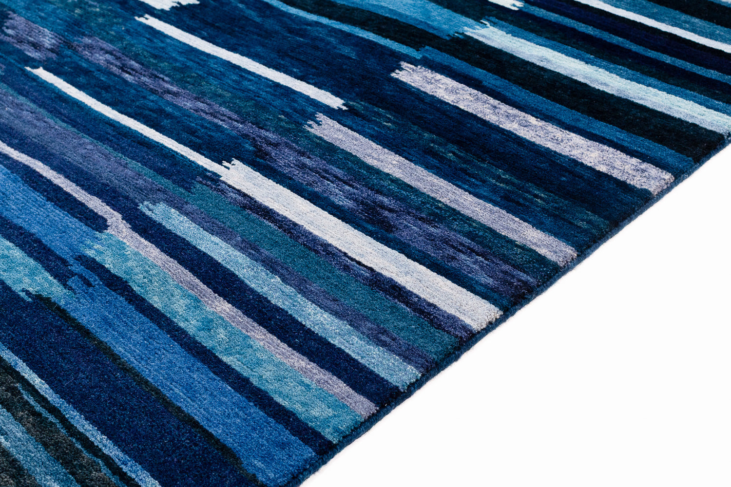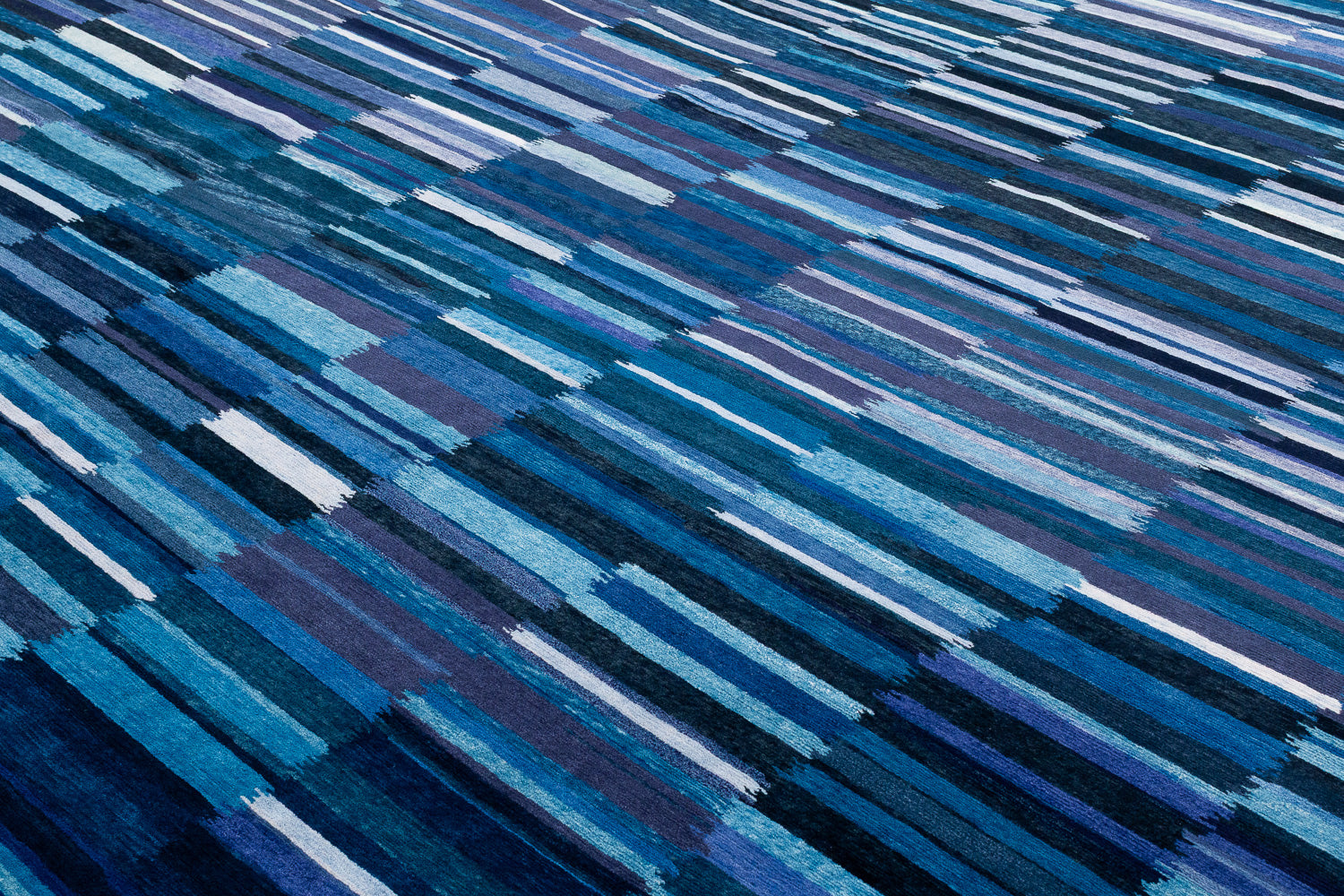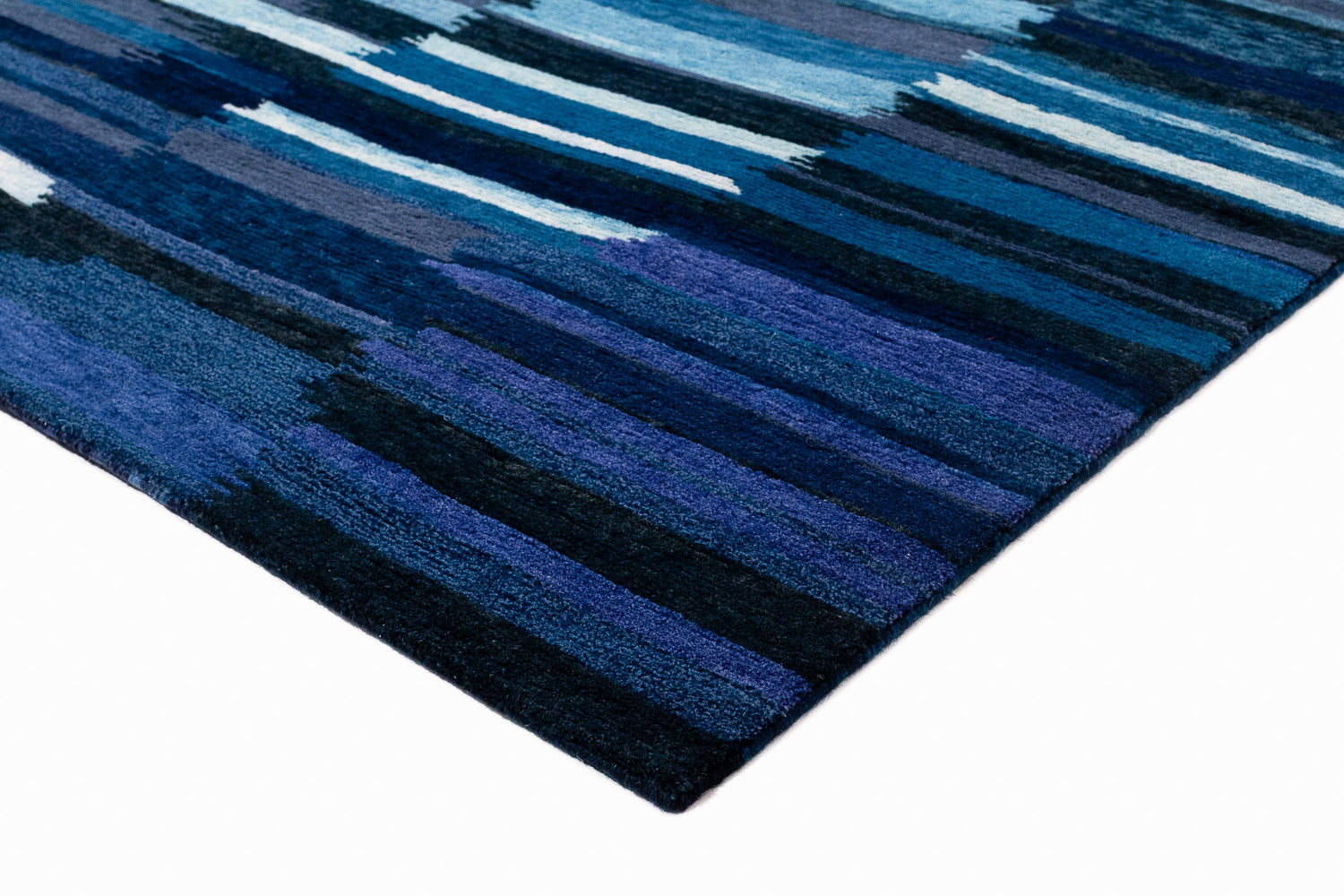 Cozumel is comprised of varied sections of indigo blue dye. Take a moment to dive in and get lost in the infinite. Crafted from super-soft 100-knot wool, it features natural variations and an enchanting abrash, adding richness and character to the design.