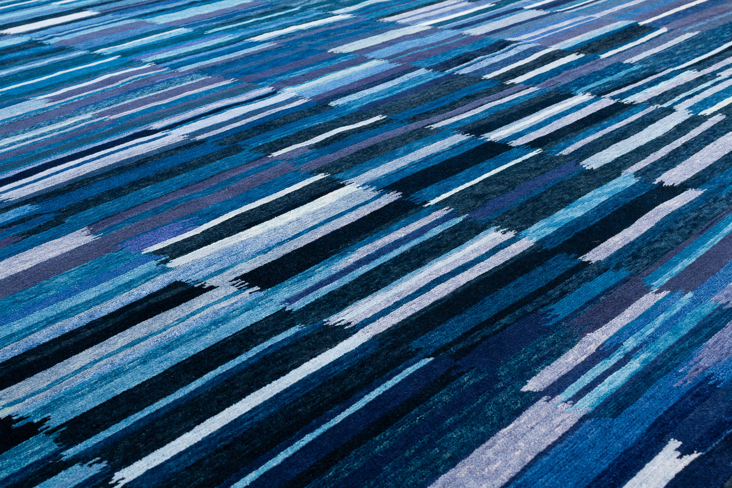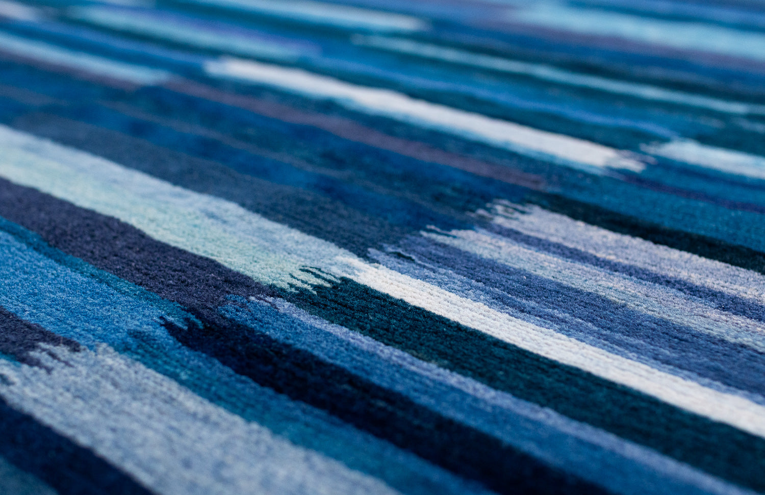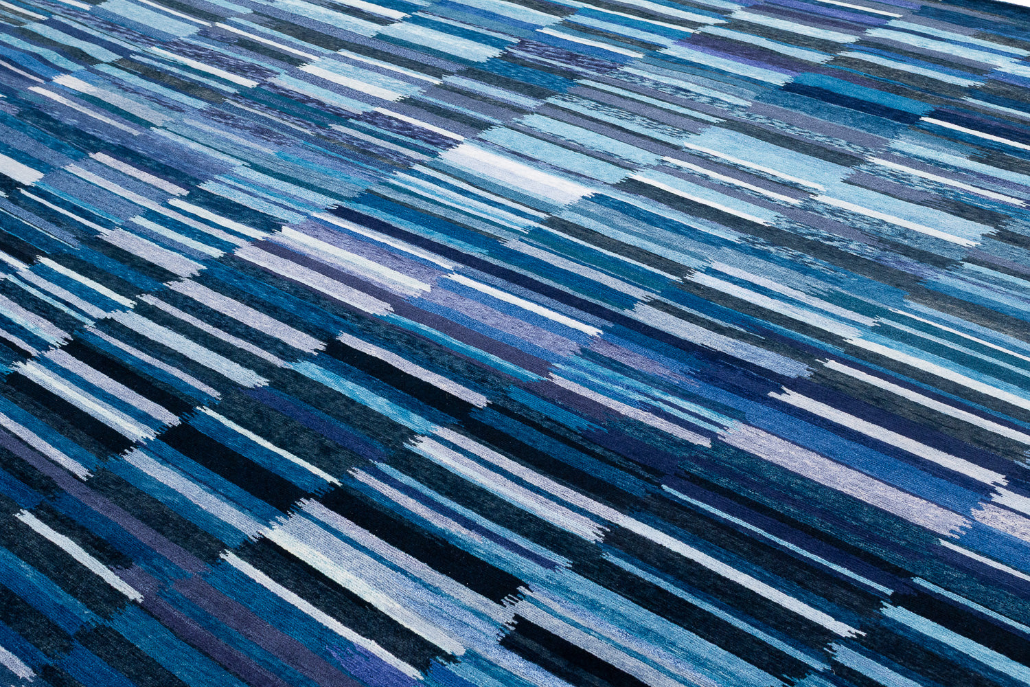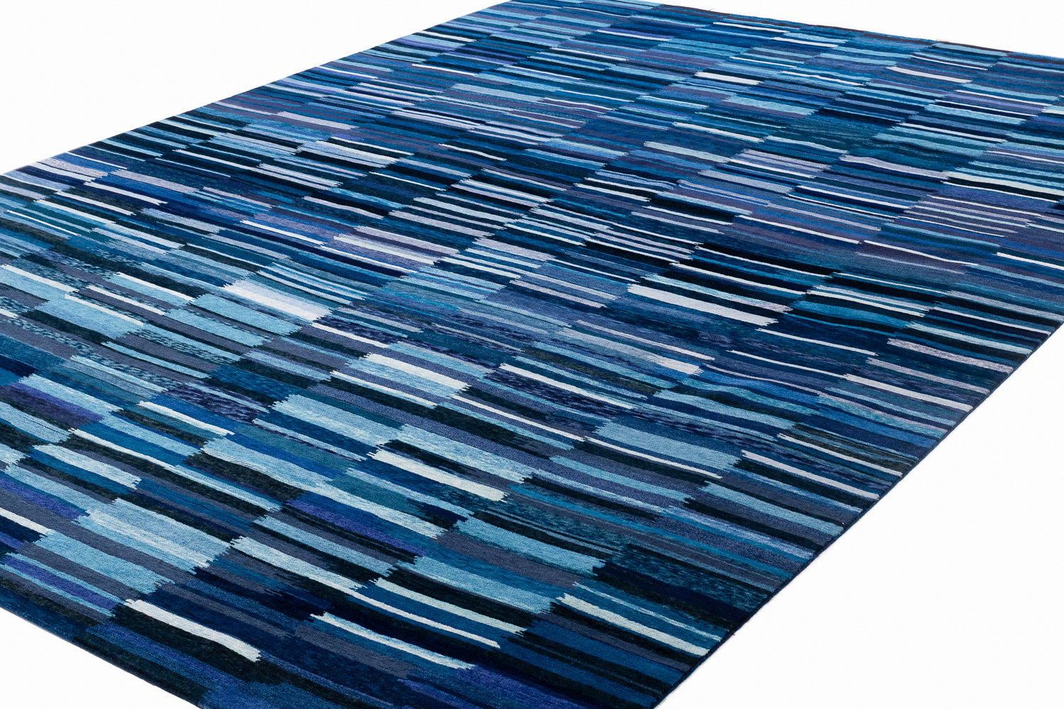 Cozumel is comprised of varied sections of indigo blue dye. Take a moment to dive in and get lost in the infinite. Crafted from super-soft 100-knot wool, it features natural variations and an enchanting abrash, adding richness and character to the design.
