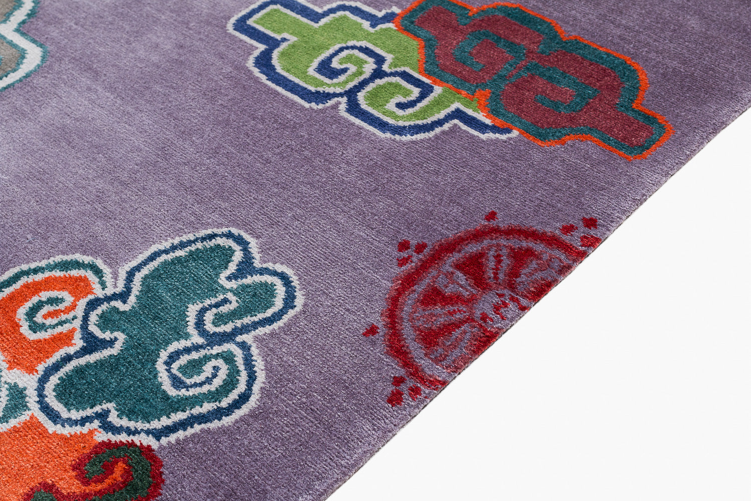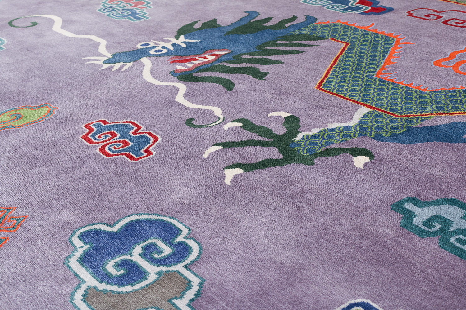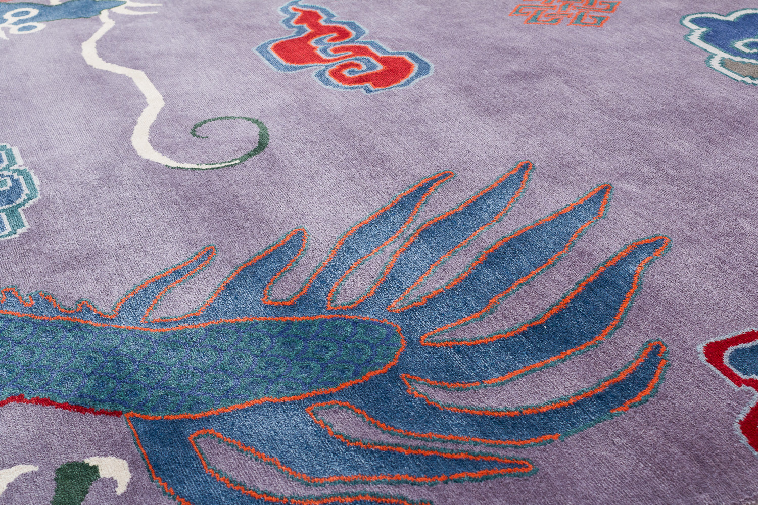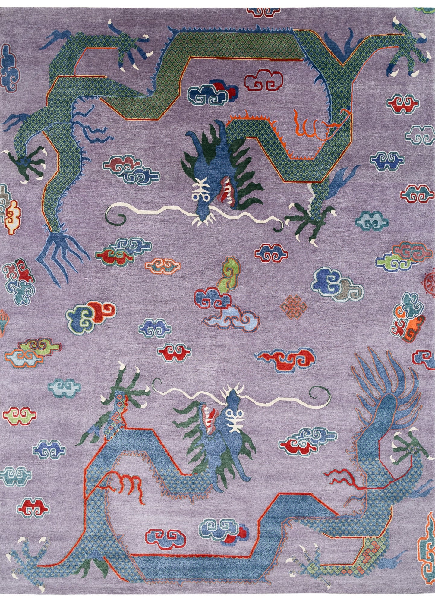 Inspired by the majestic Ming Dynasty, this one-of-a-kind rug combines the beauty of Tibetan clouds with the power of an two imperial dragons balancing each other out. It’s bold, colorful, and undeniably magical. The vibrant hues offer an energetic essence, while the design itself has an elegant, sophisticated feel. Perfect for someone who wants to add a touch of luxury and personality to their space, this rug is truly a statement piece.