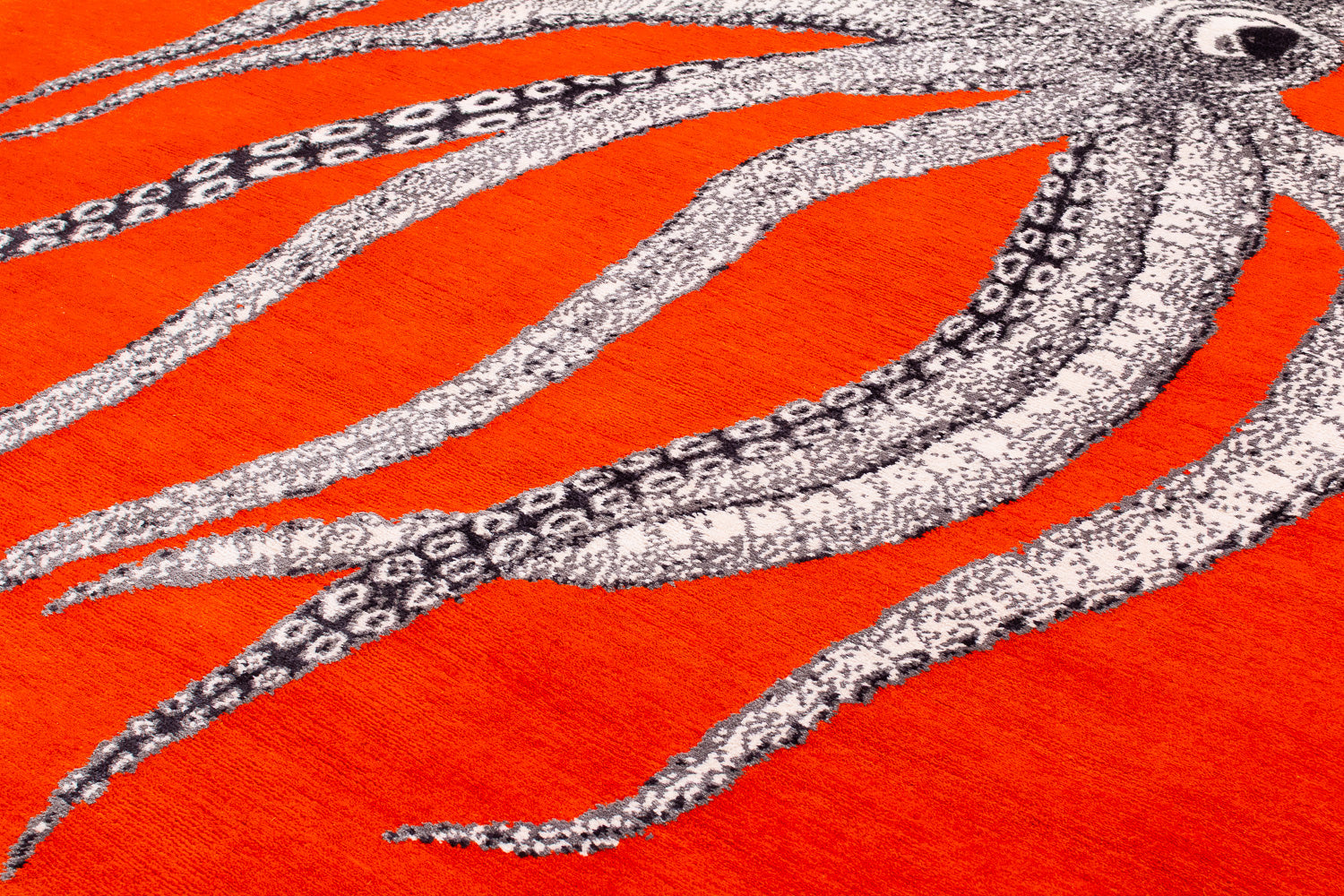 Inspired by the graphic elements of the endlessly fascinating octopus, this beautiful creature appears to float away on a field of color. The contrast between the highly intricate design and the solid background creates a striking feeling.