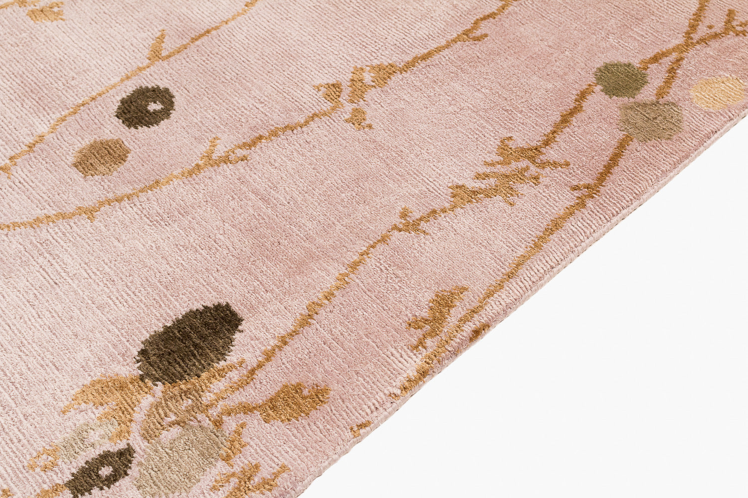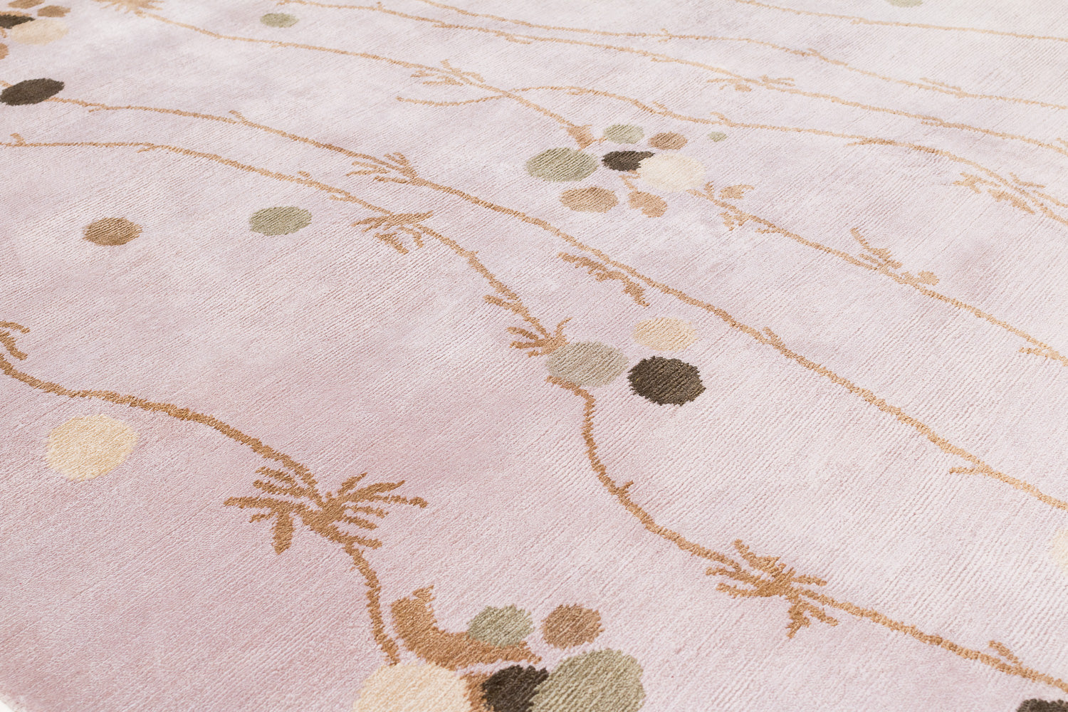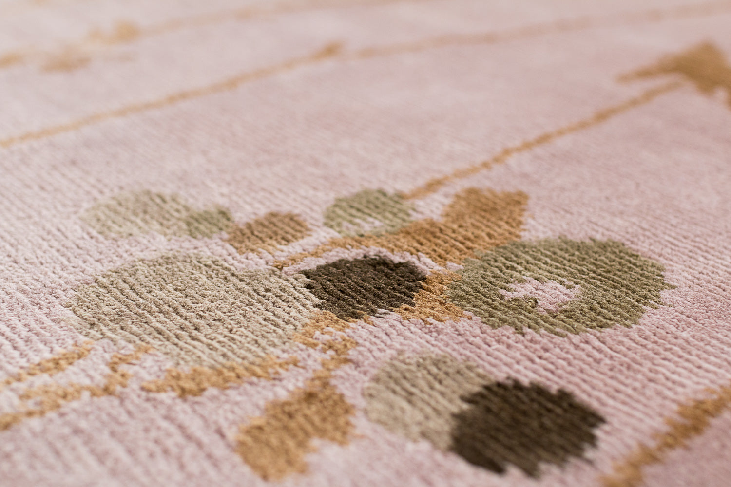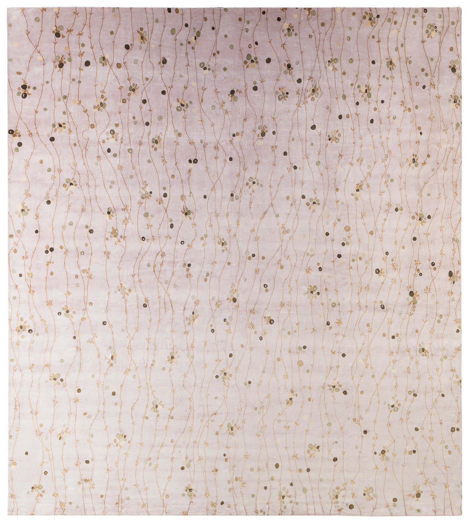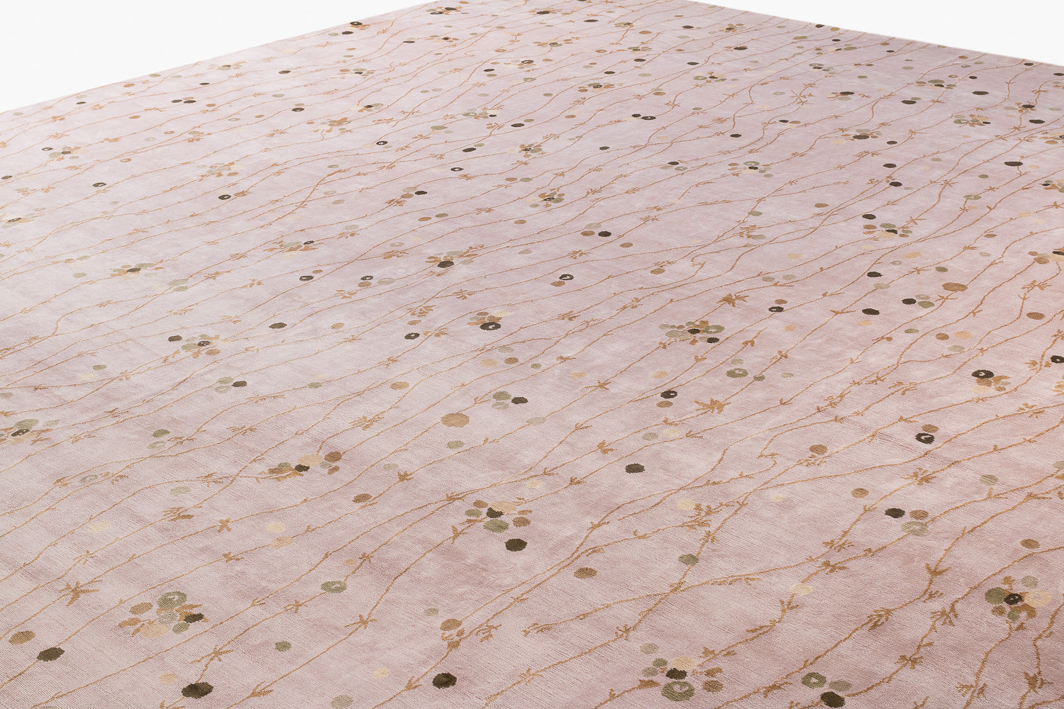 Featuring a modern botanical pattern, the design showcases vines adorned with blossoms that flow gracefully across the carpet, reflecting a subtle Japanese design influence. Japanese Vine exudes an ethereal quality, creating a timeless aesthetic.