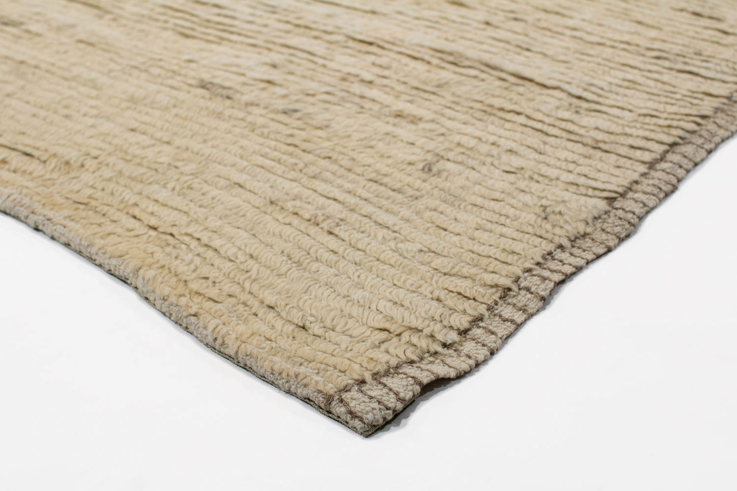 Woven by hand in Afghanistan, this exceptional rug is crafted from unbleached, natural white wool rich in lanolin, giving it a luminous softness and subtle tonal variation. The low pile and supple handle create a relaxed, blanket-like feel—inviting to the touch and effortlessly elegant underfoot. A beautiful expression of Central Asian weaving traditions, this piece offers quiet luxury and organic texture for refined, laid-back interiors.