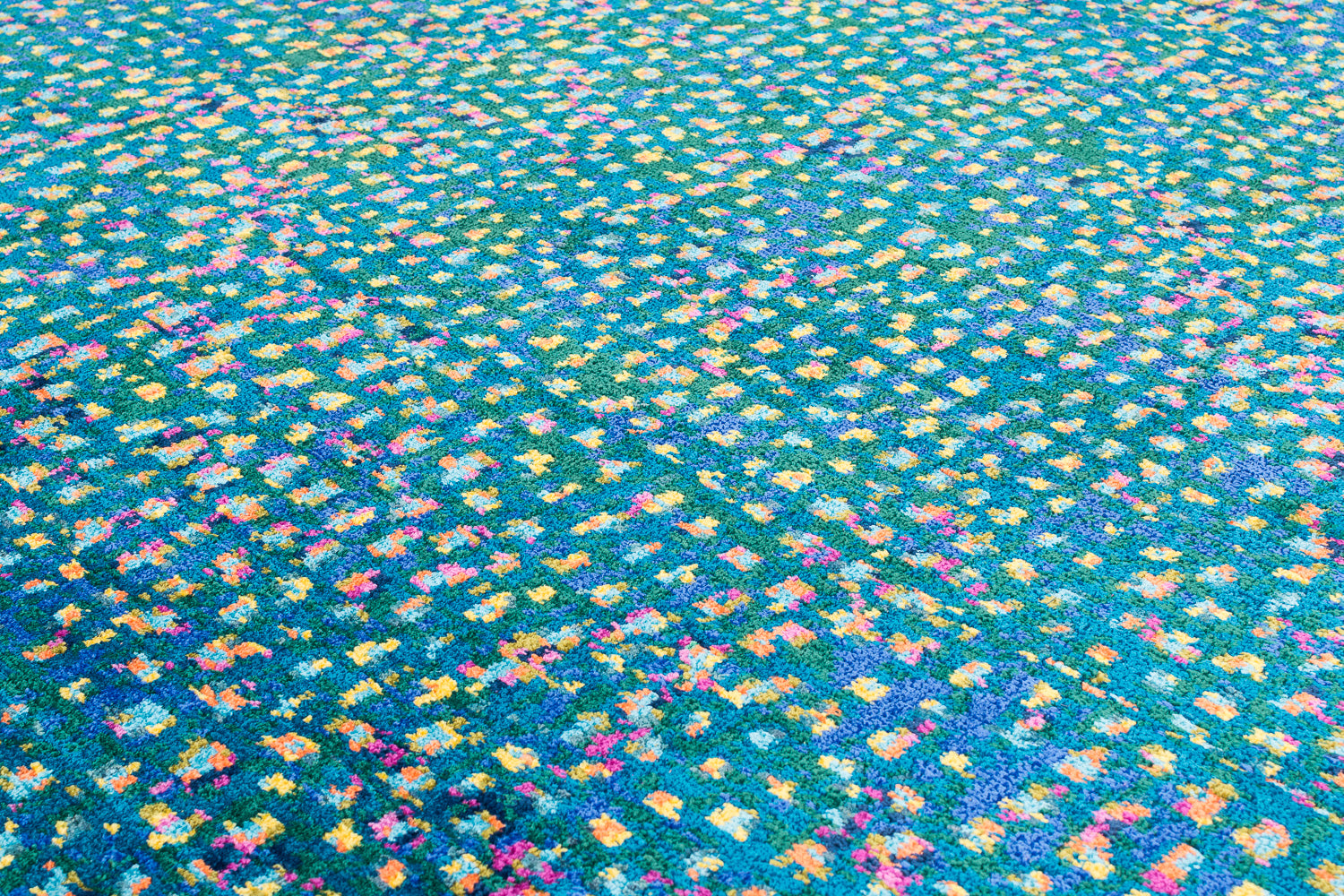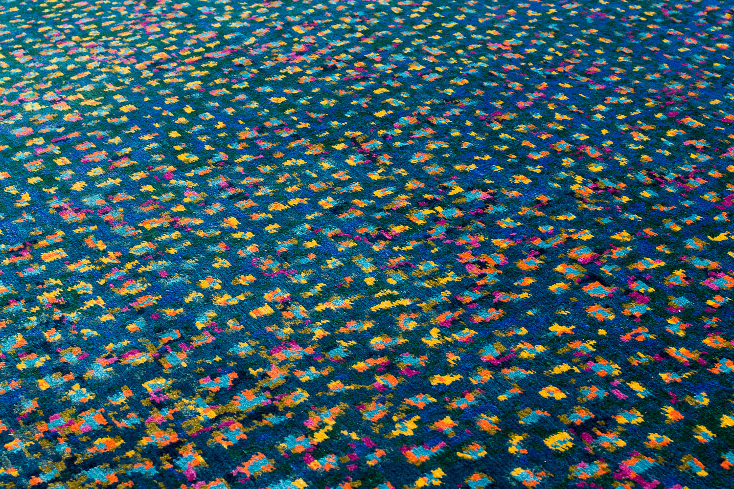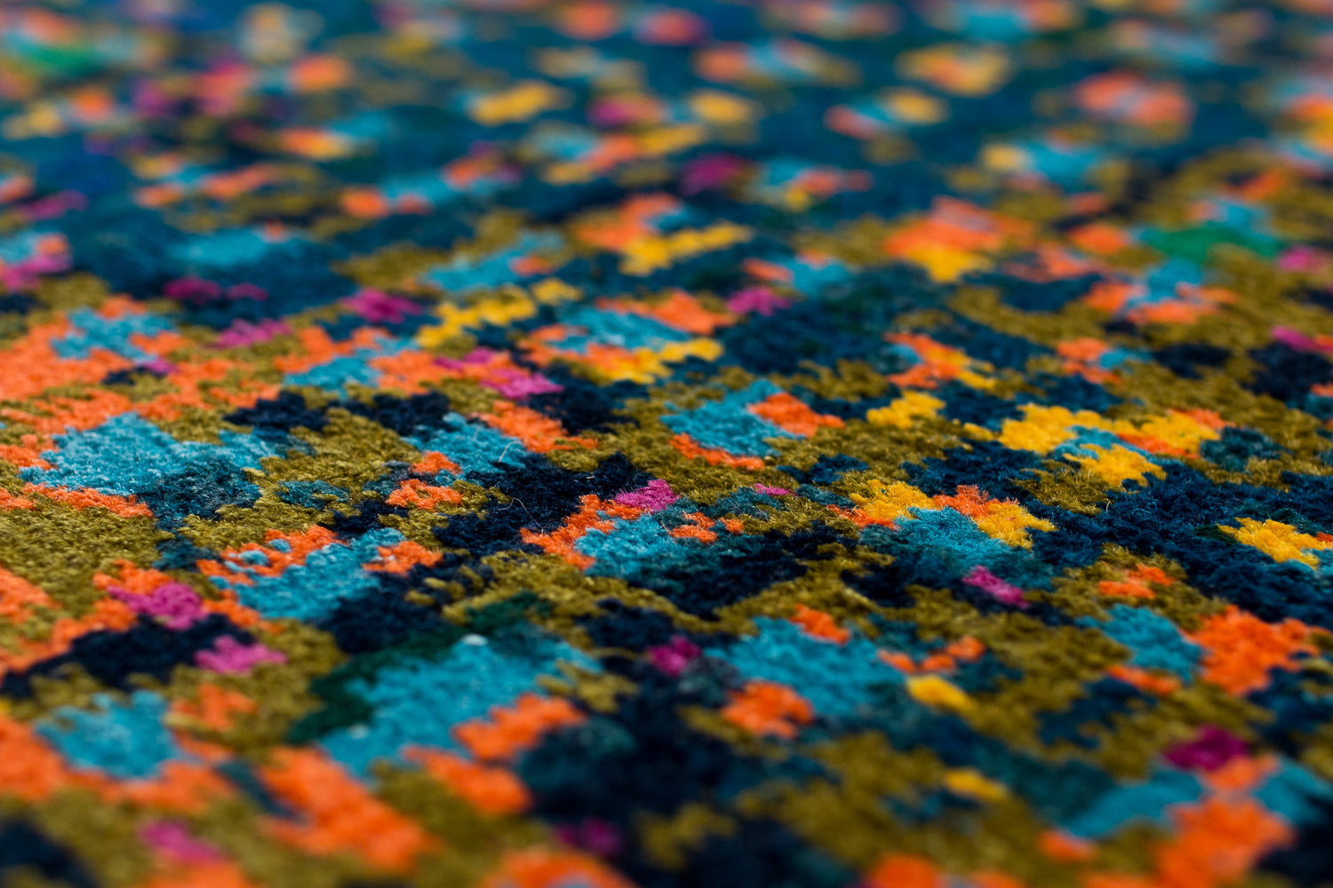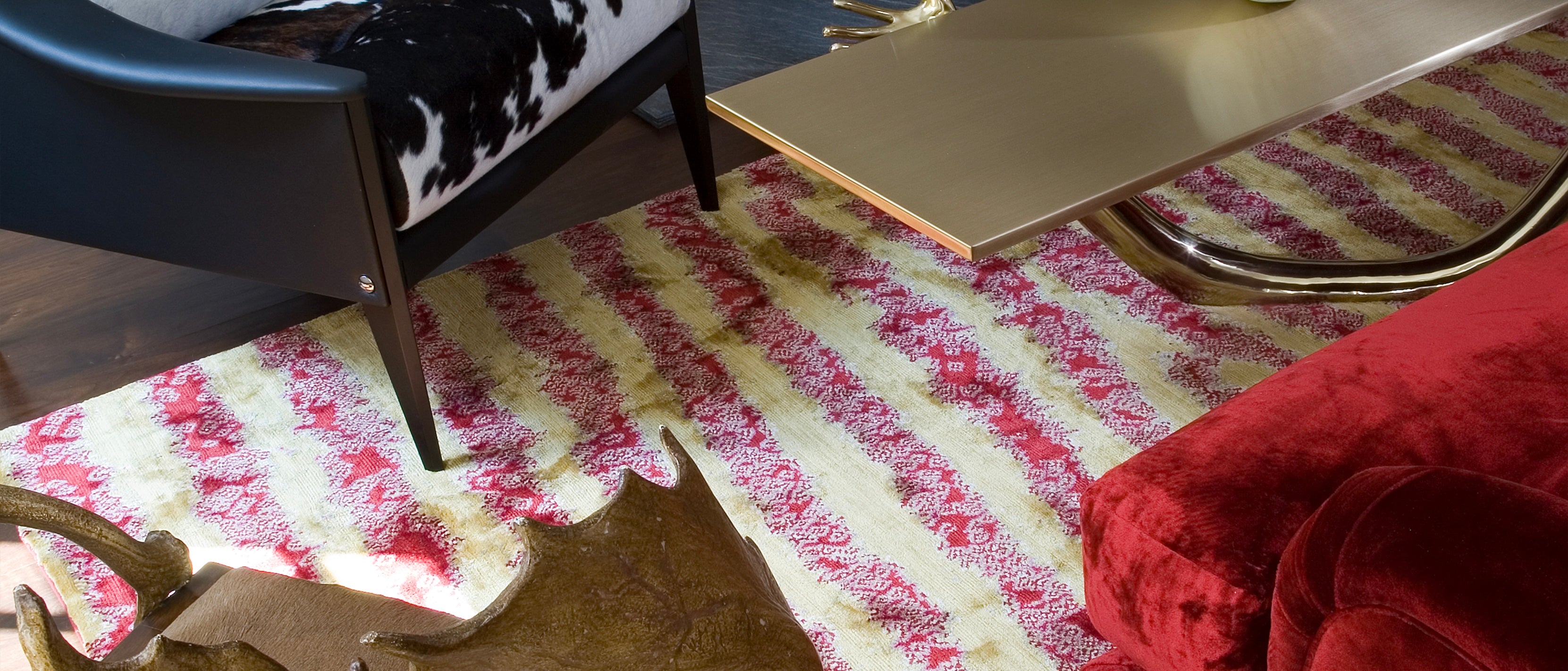 The Rishikesh pattern is inspired by a Parisian moment of the 1890s. Consisting of abstract forms like those found in Tiffany’s-stained glass, mosaics, and art nouveau glass, Joseph Carini created his own fantasy coloration with all those elements in mind.