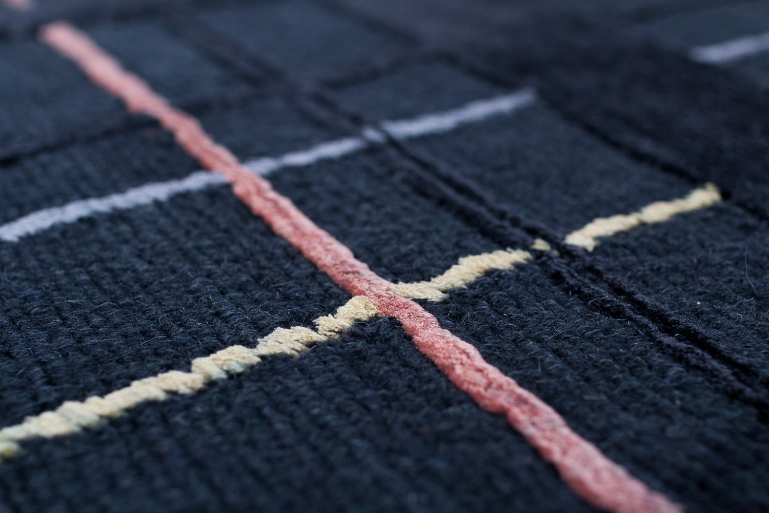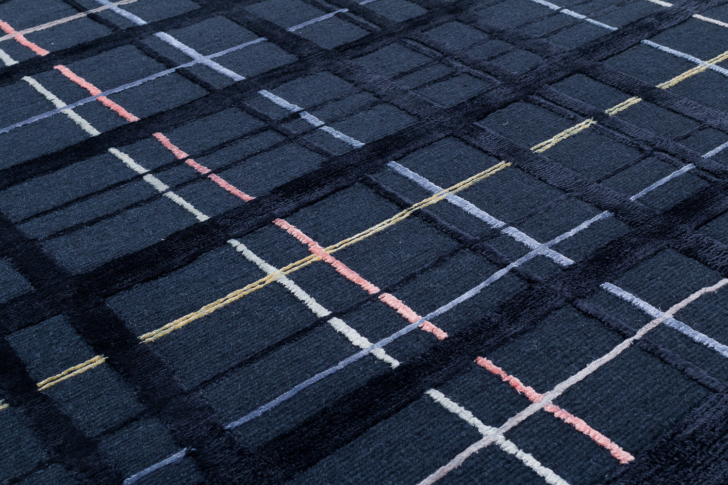 Derived from Scratchout, an original design by Joseph Carini, Scratchout Bold introduces a high low version and additional linear lines that are highlighted by shiny silk. A sophisticated pattern with both a cut pile and a loop pile for added texture variation.