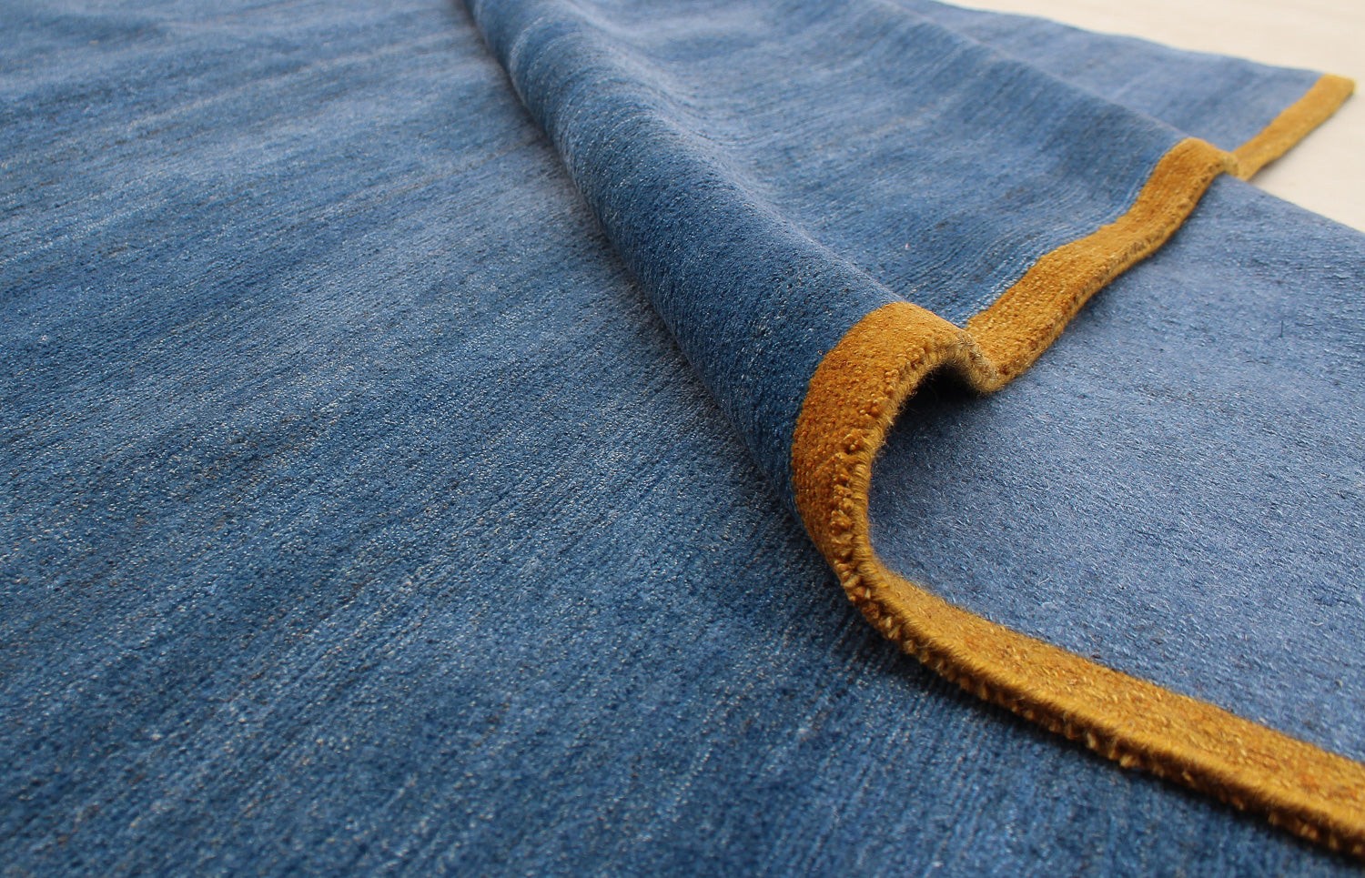 This beautiful vegetable-dyed mohair and nettle carpet features natural variations of color and abrash that create a subtle, glowing effect. As a distinctive signature, we've added a beautiful golden end panel—an elegant finishing touch unique to us.