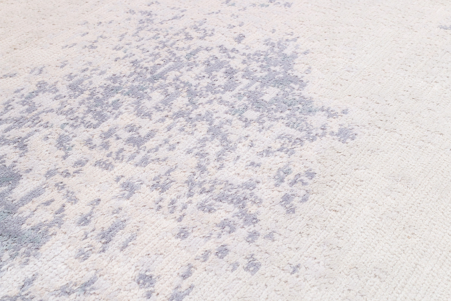 Tranquil hues of blue and creams create the palette of Storm Kitz. Woven in soft silky mohair, this carpet has a luxurious texture due to a unique ancient weaving technique that we have revived. This carpet has an old world feeling with a contemporary design.