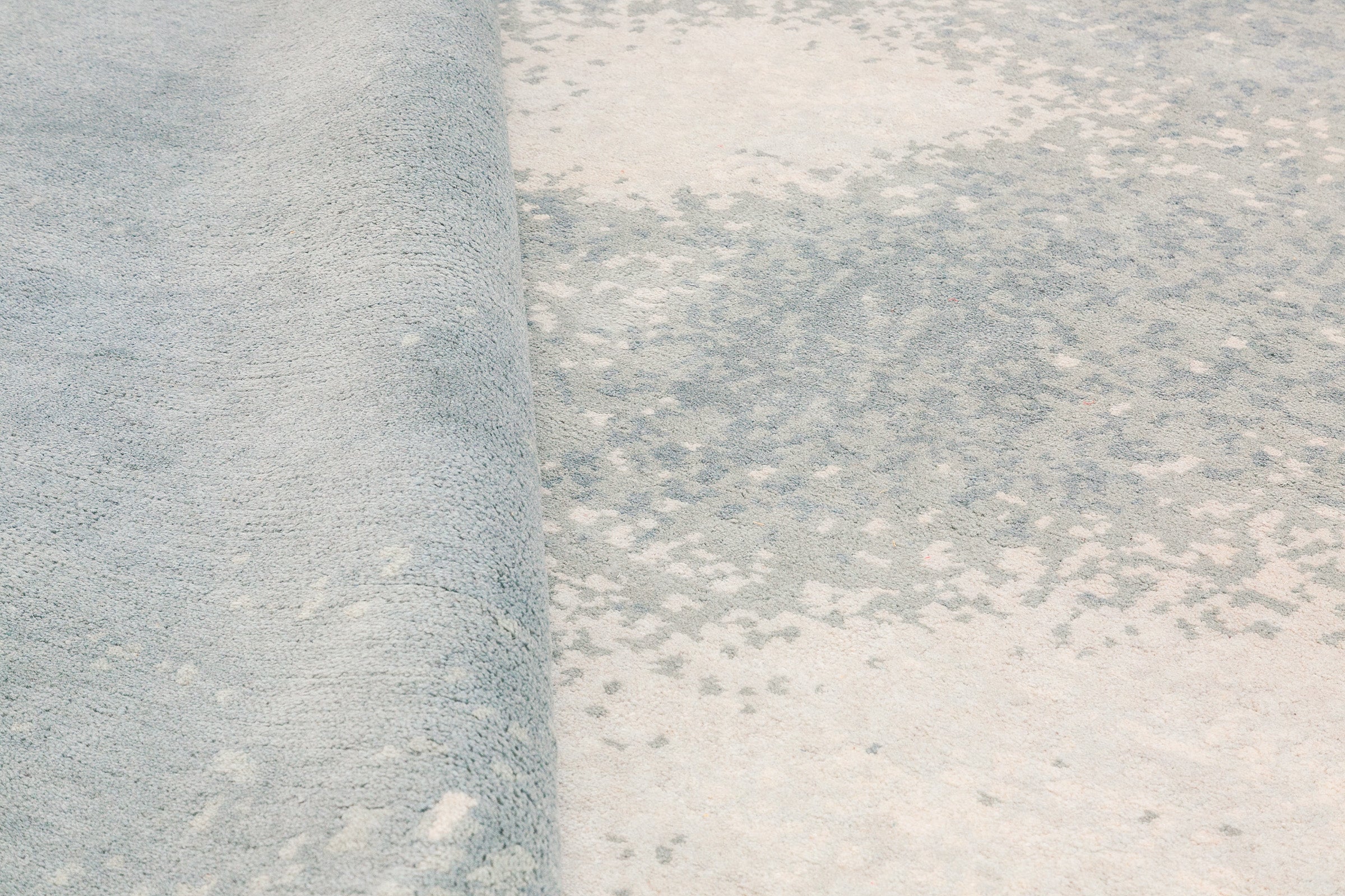 Tranquil hues of blue and creams create the palette of Storm Kitz. Woven in soft silky mohair, this carpet has a luxurious texture due to a unique ancient weaving technique that we have revived. This carpet has an old world feeling with a contemporary design.