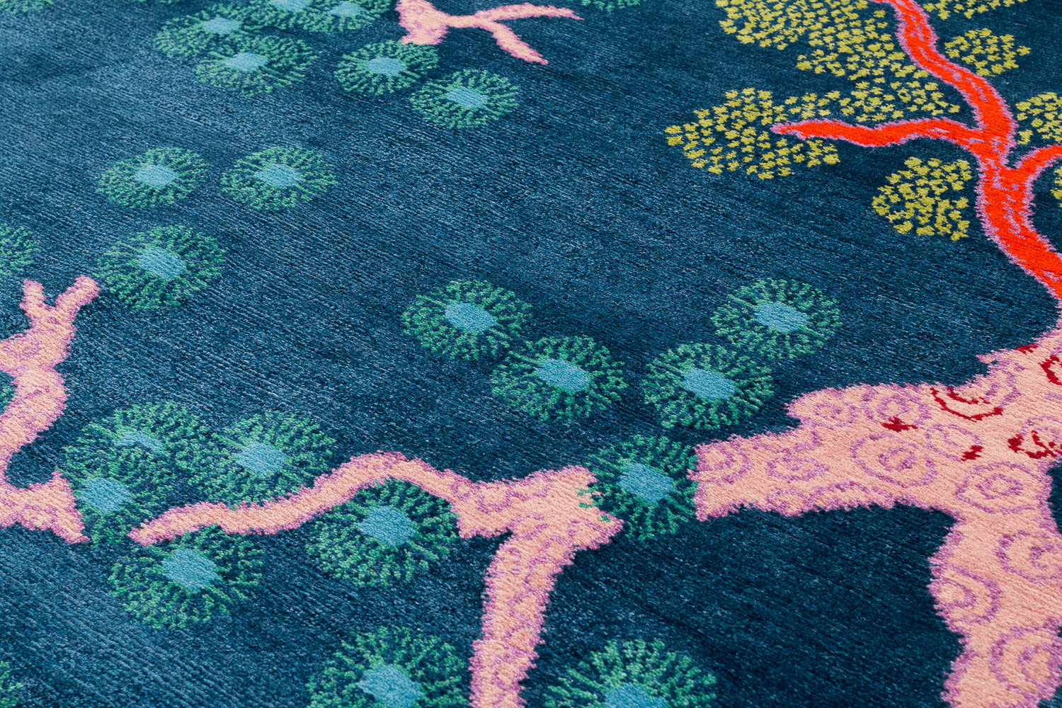 Designed by Joseph Carini, the Tree & Cloud Series is an ode to spring days and classic Eastern motifs with figuratively fragrant cherry blossoms where they bloom under and above whimsical floating clouds. It is an enchanting nod to traditional design elements while conveying a lusciously contemporary vibe.
