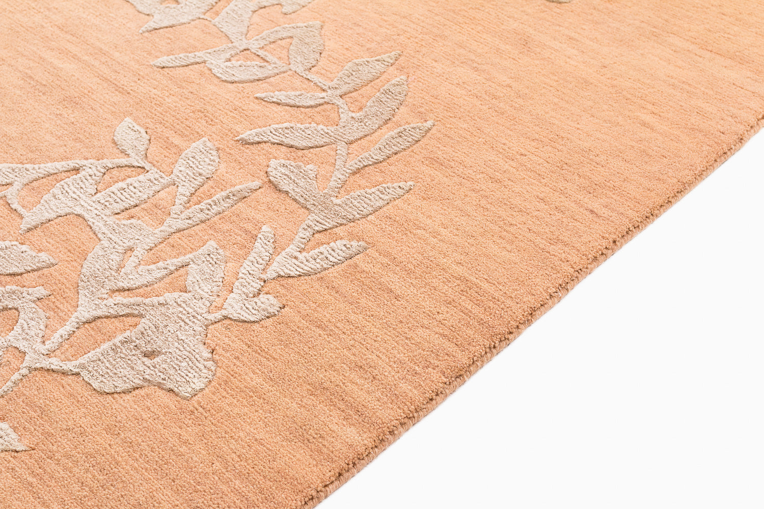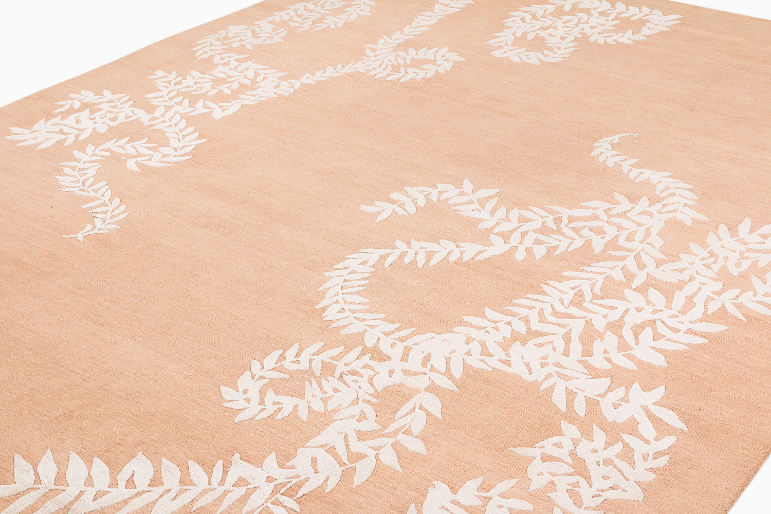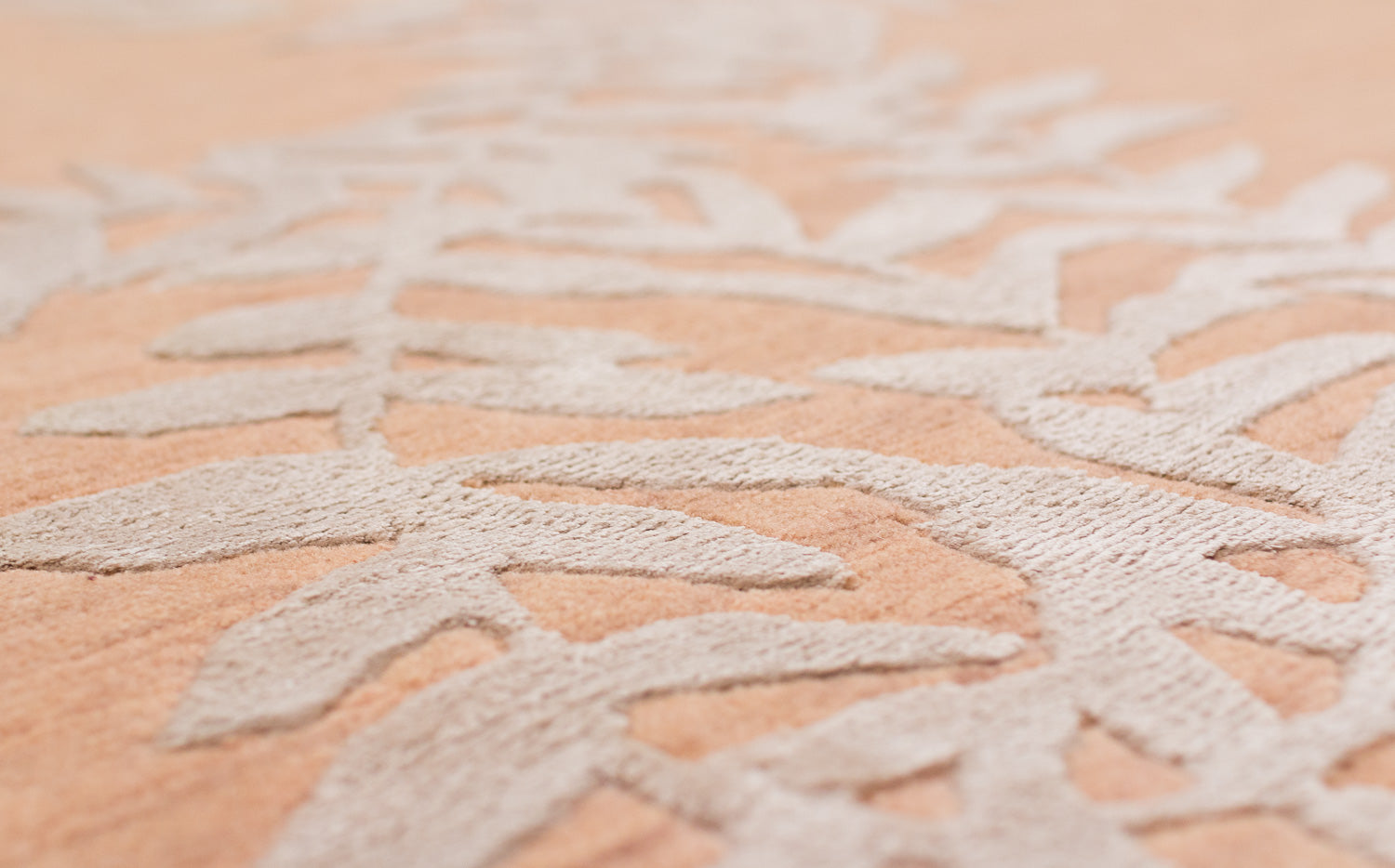 The Vines artwork is derived from Michelle Weinberg’s drawings using carbon transfer, in which lines meander creating a sense of tranquility. This rug is made with a cafe au lait pallette with a high pile woven in silk and a soft, wool background.
