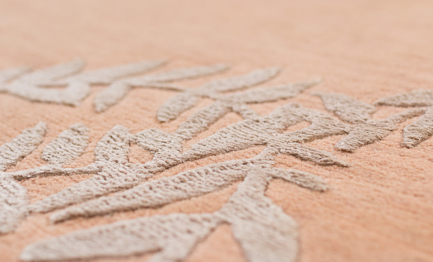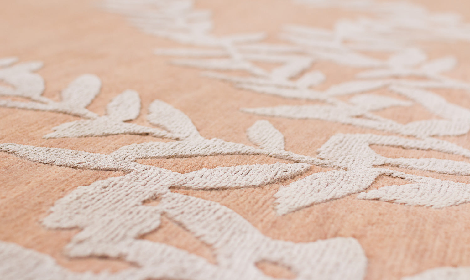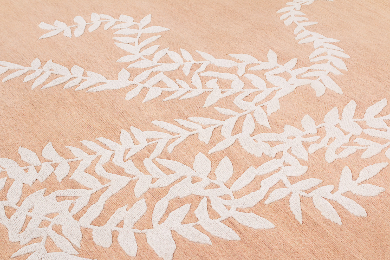 The Vines artwork is derived from Michelle Weinberg’s drawings using carbon transfer, in which lines meander creating a sense of tranquility. This rug is made with a cafe au lait pallette with a high pile woven in silk and a soft, wool background.